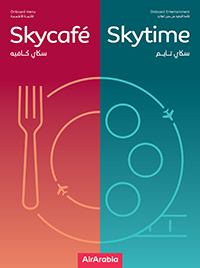 Profitez des spécialités de plusieurs cuisines internationales à bord d’Air Arabia. Sky Café, notre service de restauration à bord, vous permet de choisir parmi une large sélection de repas appétissants à bord. Sky café offre une variété allant d’un léger goûter à de délicieux repas chauds sur les longs vols. Tout cela à des prix très raisonnables !