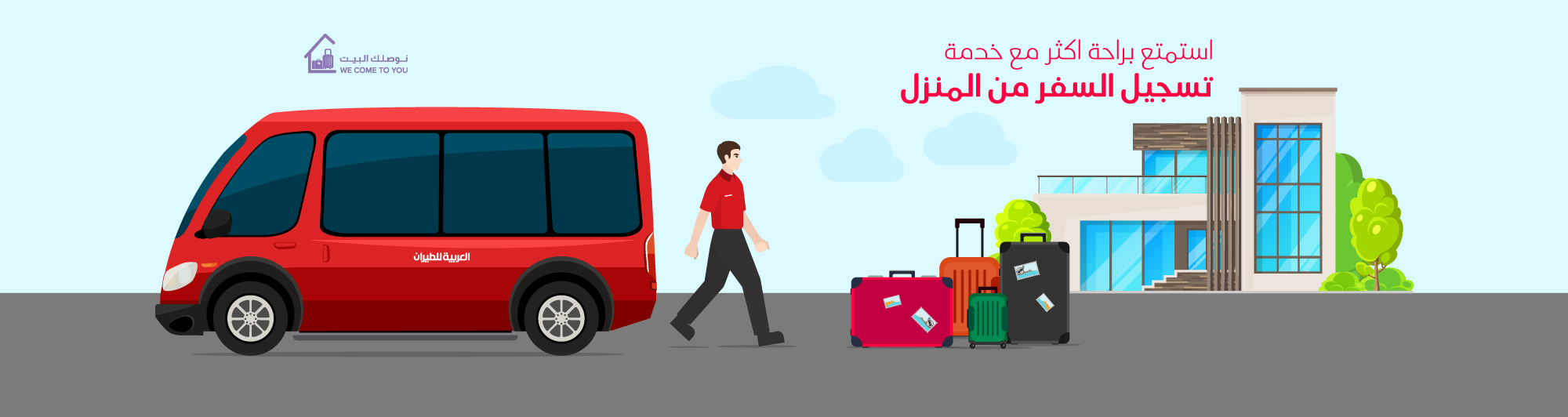 أعيش في إمارة أخرى لكنني أسافر مع العربية للطيران من مطار الشارقة. هل يمكنني حجز خدمة إنهاء إجراءات السفر من المنزل؟