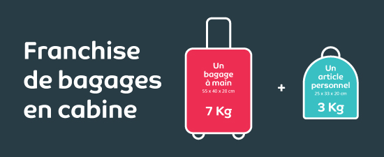 - Un bagage à main est autorisé (jusqu’à 7 kg).