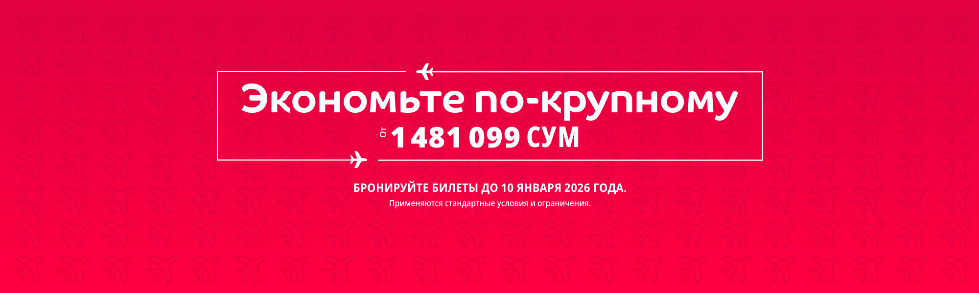 Бронируйте билеты с 29 декабря 2025 по 10 января 2026 и путешествуйте из Ташкента по цене от 1 481 099 сум в один конец!